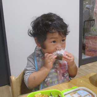 鬼ごっこの後は、お楽しみの手作りお弁当です。