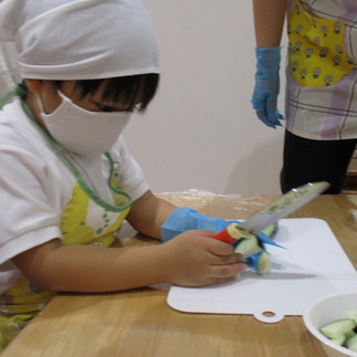 初めて包丁を触る子もいて、「ドキドキするー」と言いながら、みんな上手に切っていく姿が見られました。
