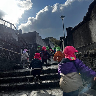 この1年で体力も脚力もついてきたあじさい・うめ組の子ども達は、坂道や階段もなんのその!!