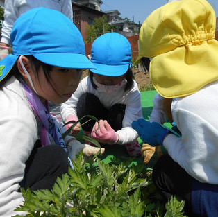 春の自然探索で、虫探しに夢中のもも・さくらぐみさん!